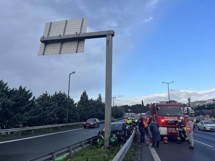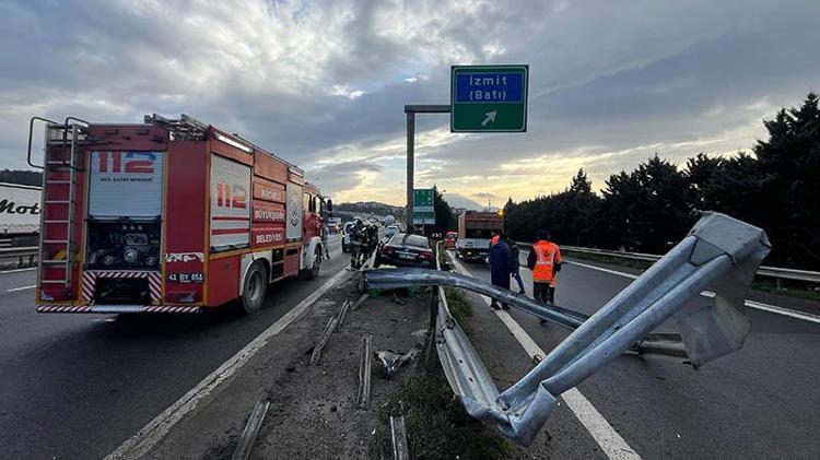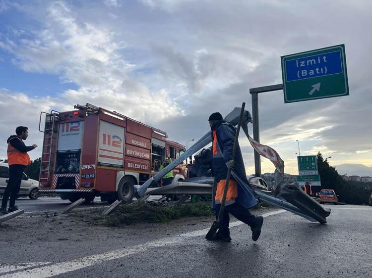 TEM Otoyolu’nun Kocaeli geçişinde yol ayrımındaki bariyere ve yön levhası tabelası direğine çarpan otomobilin sürücüsü A.K., yaralandı.