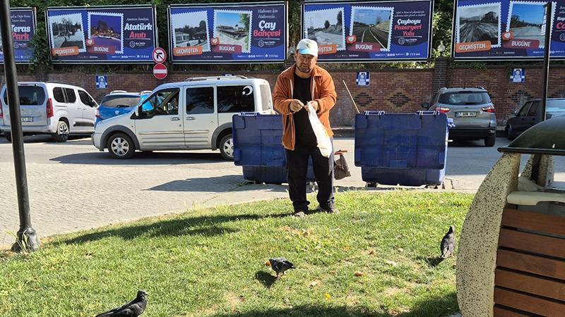 Zonguldak'ın Alaplı ilçesindeki belediyede temizlik işçisi olarak çalışan Turgay Ertürk (45), 15 yıldır çöpten topladığı ekmek artıkları ile parklardaki kuşları besliyor. Ertürk, "Onları ellerimle beslemek bana huzur veriyor. Çöpe atılan ekmek atıklarına çok üzülüyorum" dedi.