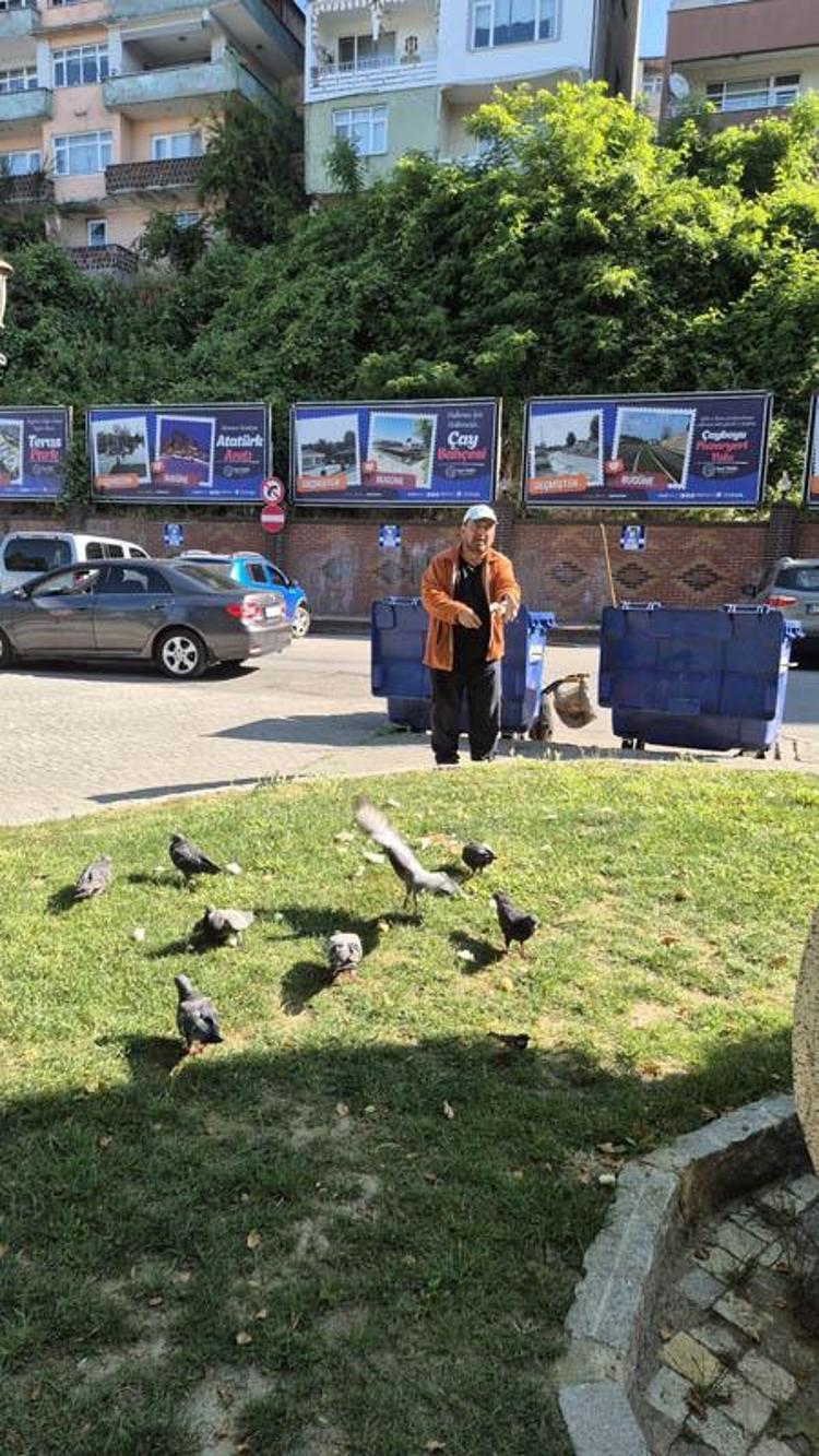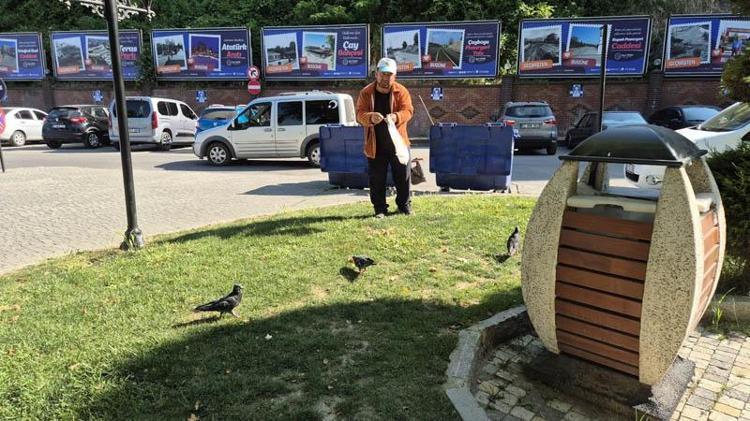 Çevresindeki insanların da bu alışkanlığını bildiğini söyleyen Ertürk, "Bazen insanlar, bayat ekmekleri poşetleyip çöp konteynerlerinin yanına bırakıyor. Ben de o ekmekleri alıp parka götürüyorum. Güvercinler beni görünce hemen etrafıma toplanıyor. Bazen sokak köpekleri ve kediler de geliyor. Onları besledikten sonra işime geri dönüyorum" diye konuştu.