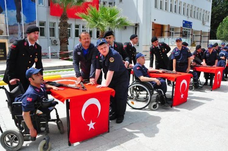 Engelliler Haftası kapsamında 15 engelli, Manisa İl Jandarma Komutanlığı bünyesinde 1 günlük temsili askerlik vazifelerini yerine getirip, yemin etti. Törende engelli jandarma erler, 1 günlük askerlik yapmanın sevincini yaşadı.