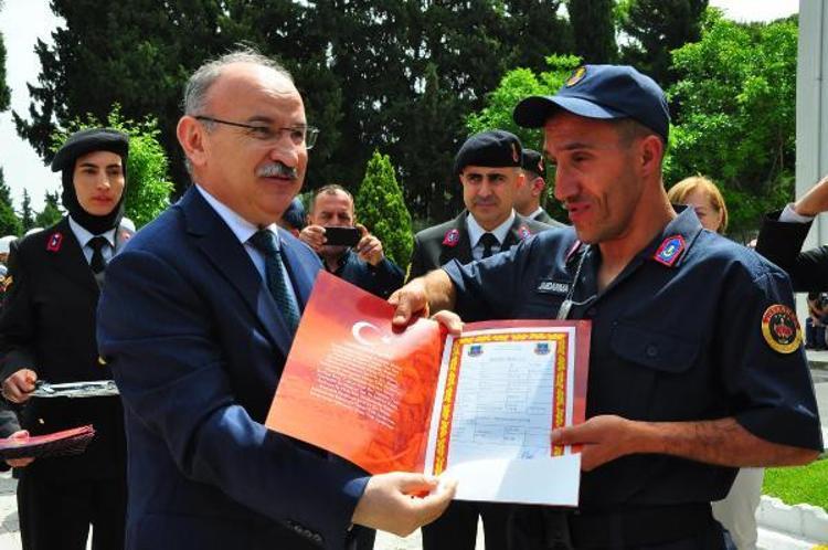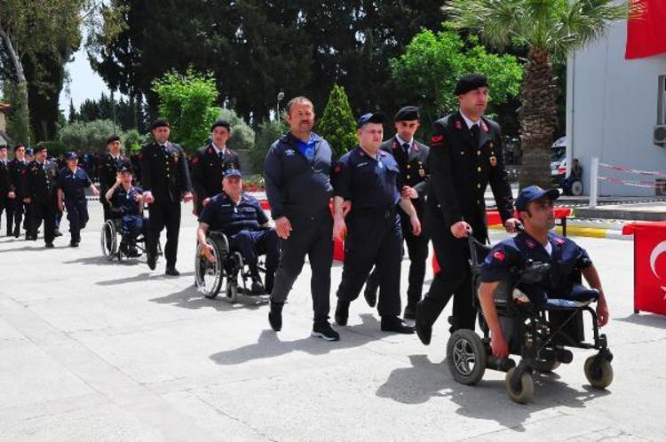 Terhis belgelerini alan engelli jandarma erler, yaptıkları tören geçişi ile ailelerini gururlandırdı. Geçişin ardından temsili tören sona erdi.