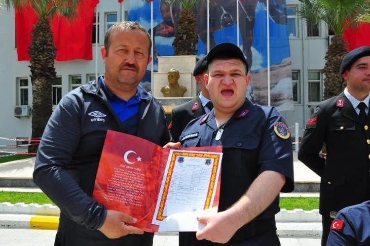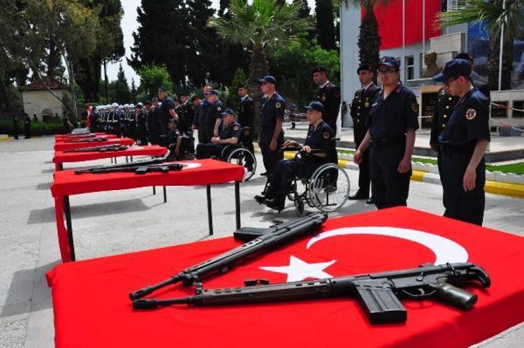 Elleri kınalı engelli gençler, Türk bayrağı ve tüfek üzerine el basarak yemin etti. Manisa Valisi Yaşar Karadeniz, Manisa İl Jandarma Komutanı Tuğgeneral Zafer Tombul, Manisa İl Emniyet Müdürü Mesut Gezer, gençlere terhis belgelerini verdi.