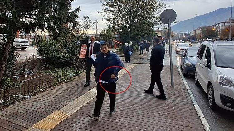 Osmangazi ilçesi Haşimişcan Caddesi’nde otobüsten inerek 15 Temmuz Demokrasi Meydanı’na doğru yürüyen kişi, montunun cebinden çıkardığı kağıt parçalarını yere attı.