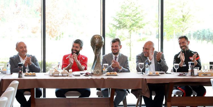 Kazandıkları Dünya Kupası'yla organizasyona katılan şampiyonları kutlayan Mehmet Büyükekşi, "Sizler azmin, mücadelenin sembolü oldunuz. Tek eksiğiniz Dünya Kupası'ydı, bunu da kazanıp milletimizi bir kez daha gururlandırdınız. Sizleri tebrik ediyorum, başarılarınızın devamını diliyorum" diye konuştu.