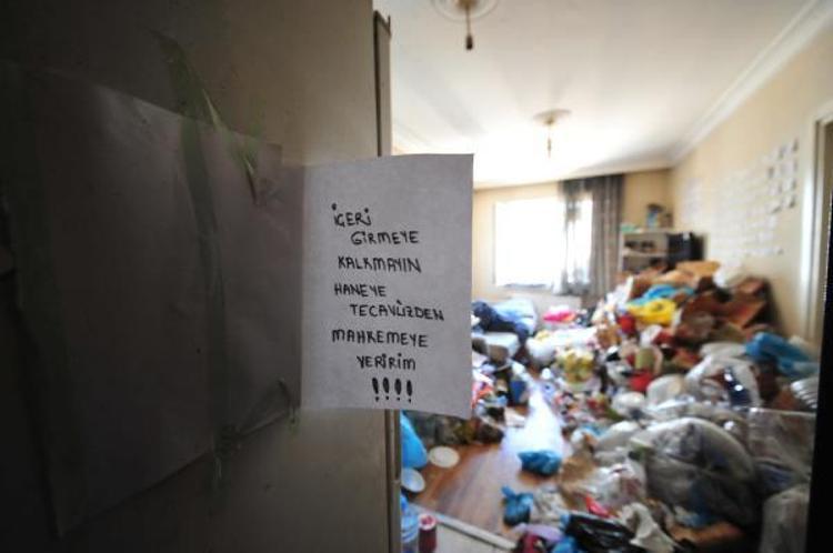 İcra ekibinin çilingir yardımıyla girdiği evin kilitli ve çöple dolu odasında ise 9 yaşındaki çocuk baygın halde bulundu.
