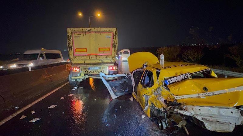 Kaza, akşam saatlerinde Çorlu çevre yolu üzerinde meydana geldi. Veysi Sakızcıoğlu yönetimindeki 59 AKP 715 plakalı kamyon yağmur nedeniyle kayganlaşan yolda hızını azaltınca arkasından gelen Musa Samur'da yönetimindeki 59 T 2709 plakalı taksi de yavaşladı.