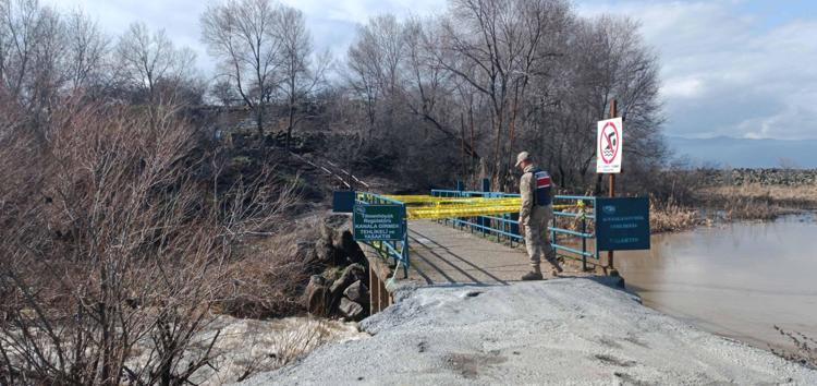 Gaziantep'in İslahiye ilçesinde Tilmen Höyük'e ulaşımı sağlayan Karasu Çayı üzerindeki köprü, sağanak nedeniyle yaya geçişine kapatıldı.