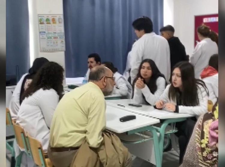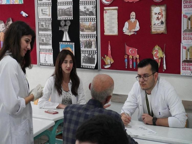 Tıp öğrencileri ilk hastalarına muayenehaneye çevirdikleri ilkokulun sınıfında baktı