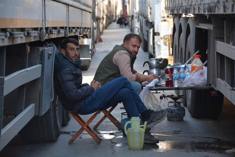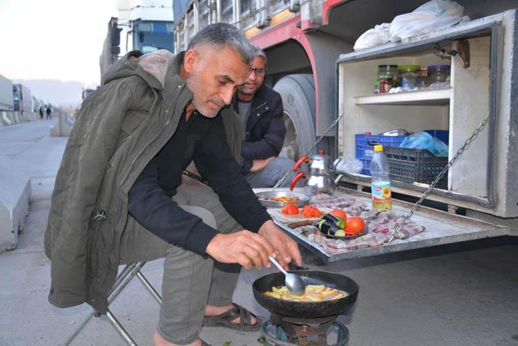 Silopi’de Habur Sınır Kapısı üzerinden Irak’a yük taşıyan TIR şoförleri, sıra beklerken yemeklerini araçlarının dorsesindeki dolaplarda hazırlayarak iftarlarını açıyor. Dorse dolapları seyyar bir mutfağa çevrilerek pişirilen yöresel yemekler, iftar zamanı kasalarda veya yere serilen sofralarda diğer şoförlerle birlikte yeniliyor. Özellikle Şanlıurfalı şoförler, iftar sofralarında kentleriyle özdeşleşmiş çiğ köfte hazırlayarak iftarı bekliyor.