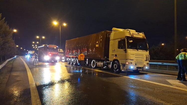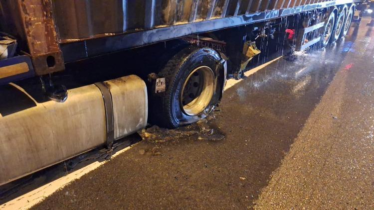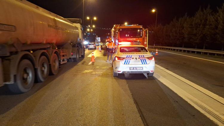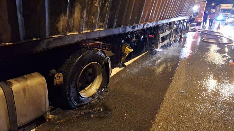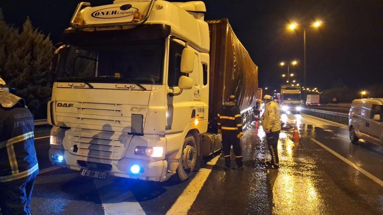 Olay saat 21.00 sıralarında TEM Otoyolu İzmit geçişi Otogar-Kandıra Gişeleri mevkisinde meydana geldi. İstanbul yönüne giden M.A. idaresindeki 14 BM 649 plakalı TIR'ın çekici kısmının sol arka tekerleğinin fren sisteminde yangın çıktı.