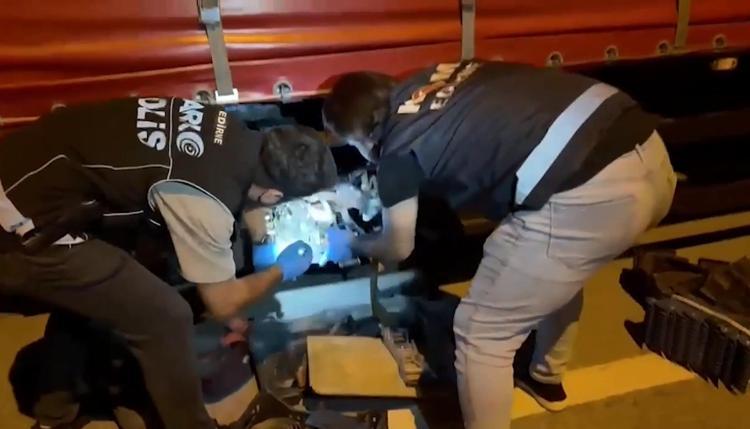 Edirne'de polisin bir TIR'da yaptığı aramada piyasa değeri 50 milyon lira olan işlenmiş kehribar, ham kehribar ve pırlanta taşlı yüzükler ele geçirildi.