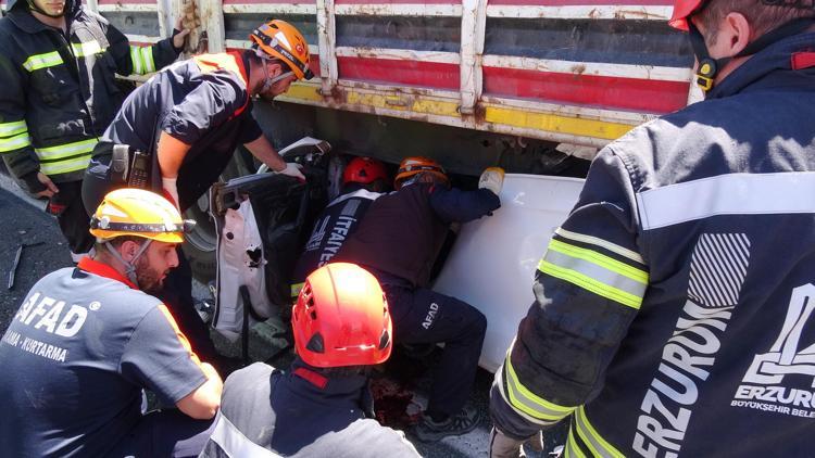 Erzurum’da otomobil, arıza nedeniyle sürücüsünün yol kenarında park ettiği demir yüklü TIR'ın altına girdi. Kazada otomobil sürücüsü Burak Kayacı (18) yaşamını yitirdi.