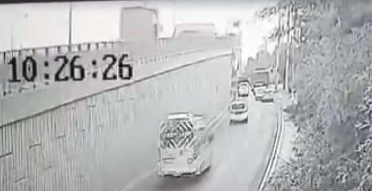 Bu arada kazanın bir iş yerinin güvenlik kamerasına yansıdığı ortaya çıktı. Görüntülerde; TIR şoförünün kontrolünü yitirmesi ve aracın kupasının viyadükte asılı kalması yer alıyor.