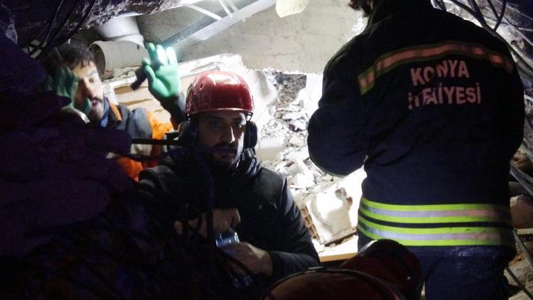 Hatay'da depremin ilk gününden itibaren arama-kurtarma çalışması yürüten Konya Büyükşehir Belediyesi itfaiye ekipleri, şu ana kadar 267 kişiyi kurtardı; 287 kişinin ise cansız bedenine ulaştı. Ekip amiri İbrahim Navruz, "Ekip arkadaşlarımız, enkaz altında olduğunu umut ettiğimiz kişiye, 'Sesimi duyuyorsan elini, tırnağını bir yere sürt' diyerek sesleniyor. Oradaki vatandaşımız, insanımız o sesi duyduğunda herhangi bir sürtme ya da tırnak kazıma hareketi yaptığında yerini rahatlıkla tespit edebiliyoruz" dedi.