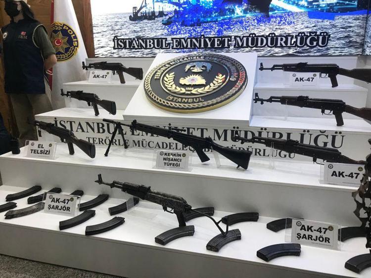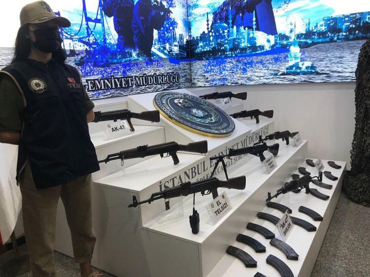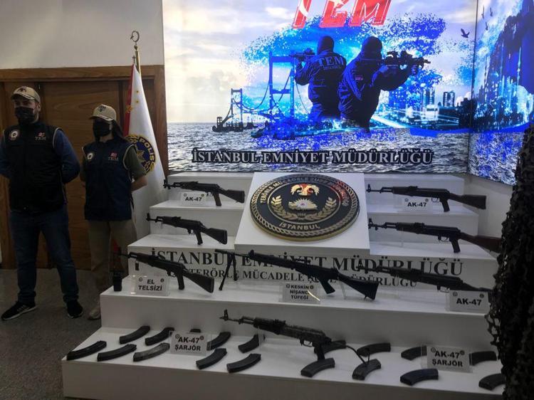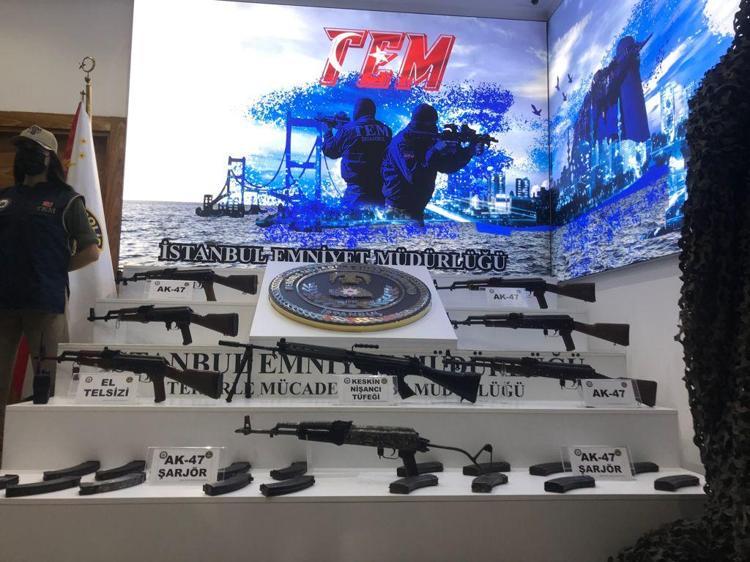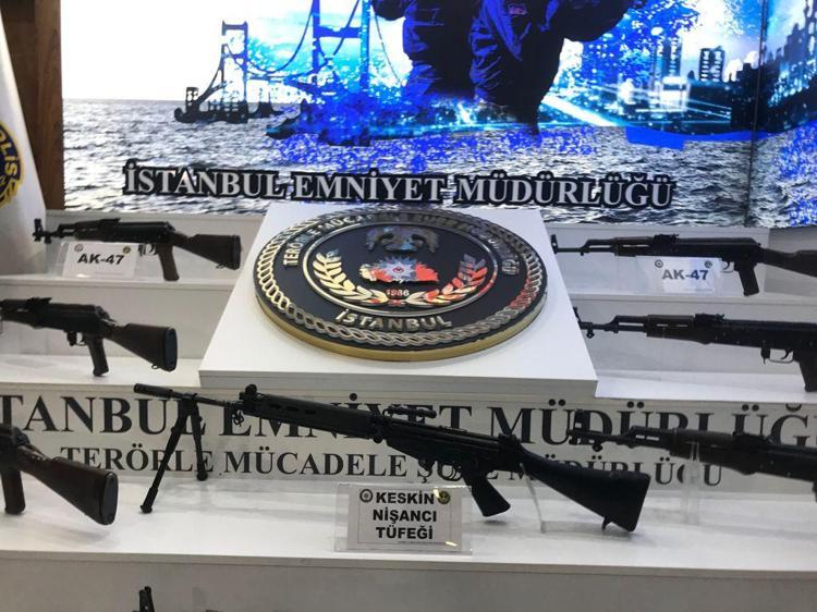 İstanbul'da TKP/ML örgütüne yönelik gerçekleştirilen operasyonda ele geçirilen silahlar emniyet müdürlüğünde basına gösterildi.