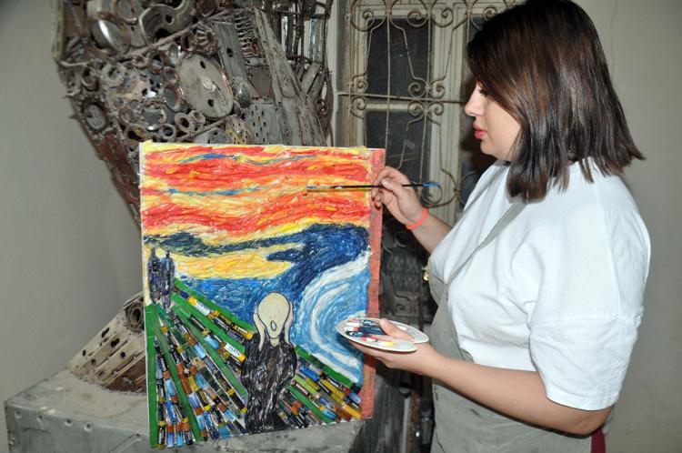 Topladığı atıklar ile ünlü ressamların tablolarını yapıyor