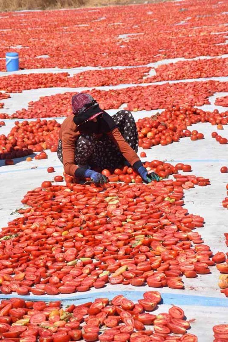 Güneşe bırakılan domateslerin rüzgar ve nemin durumuna göre 5 ile 7 gün arasında kuruduğunu anlatan Olgun, "Kuru domatesler, fabrikalara gönderiliyor ve yeni bir işlem başlıyor.