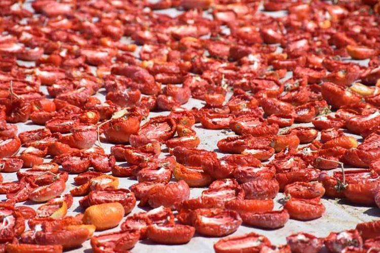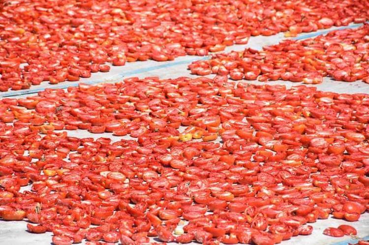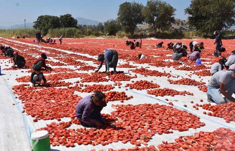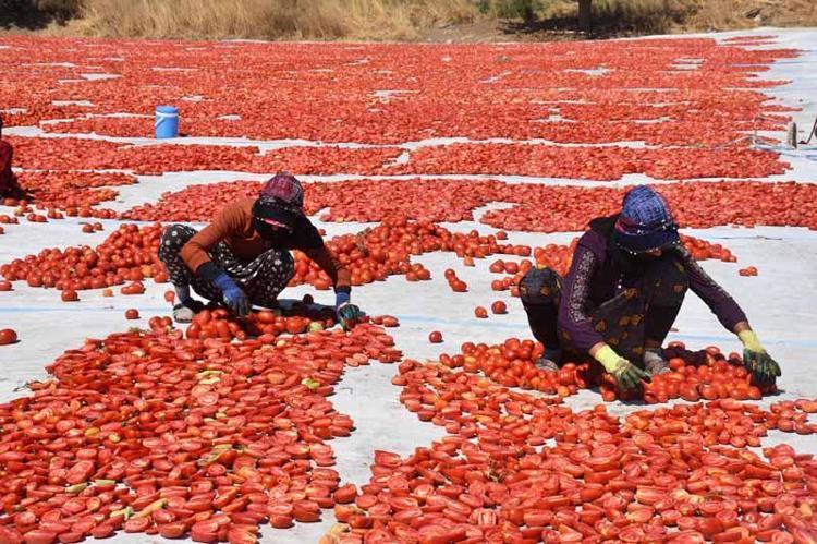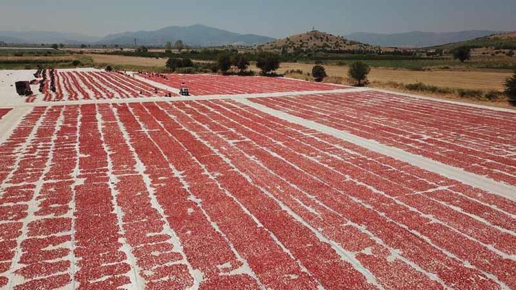 Türkiye'de kurutulmuş domates ihracatının 3'te 2'sinin yapıldığı, İzmir'in Torbalı ilçesinde domatesler, oluşturulan sergilerde kavurucu sıcakta özenle kurutuluyor. 6-7 gün içinde kuruyan domatesler, ABD ve Almanya ile Belçika dahil 100'e yakın ülkeye ihraç ediliyor. Torbalı Ticaret Odası Başkanı Abdulvahap Olgun, "Torbalı'daki nem oranı, güneş açısı ve rüzgar, Türkiye'nin başka hiçbir yerinde yok" dedi.