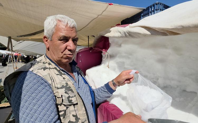 Silifke’de, Toros Dağları eteklerinde bulunan Bulgar Bozoğlan Yaylası'ndan kar getiren Muzaffer Beslenti, kamyonetinin arkasında depolayarak pazarda satışa sunuyor.