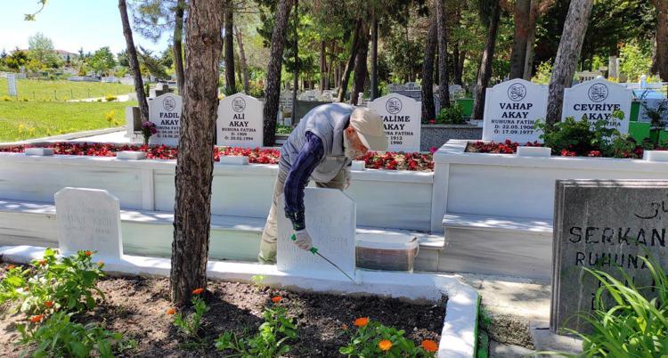 Tekirdağ'ın Çerkezköy ilçesinde yaşayan Nurullah Ersöz(74), yıllar önce ilk eşini hastalıktan, 4 yıl önce de torununu trafik kazasında kaybetmesinin ardından her gün mezarlığa gidip, kimsesizlerin mezarlarının bakımını yapıp, taşlarında silinen yazılarını yeniliyor.