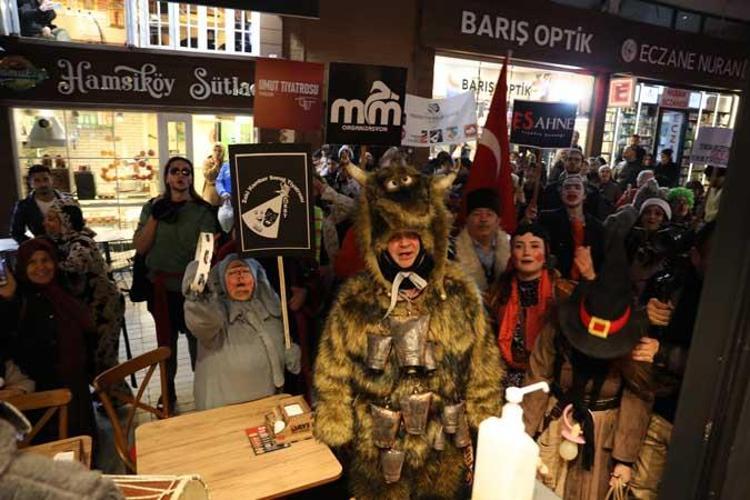 Davul ve şarkılar eşliğinde gezen kostümlüler, maniler okuyarak torba atma geleneği ile esnaflardan yiyecek istedi. Kostüm giyen tiyatro oyuncuları şenliğe katılanlarla şakalaştı, tiyatro gösterileri sunup, ‘Kalandar’ geleneklerini canlandırdı.