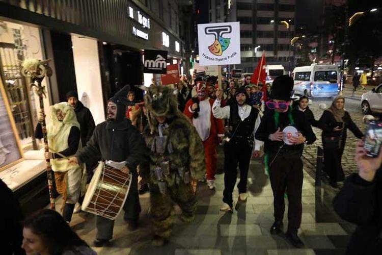 Trabzon’da Rumi takvime göre, yeni yılın ilk ayının adı olan 'Kalandar' için şenlik düzenlendi. 'Kalandar' şenliğinde, geleneğe özgü kıyafetler giyen bir grup tiyatro ekibi maniler okuyarak çevredeki insanları etkinliğe davet etti.