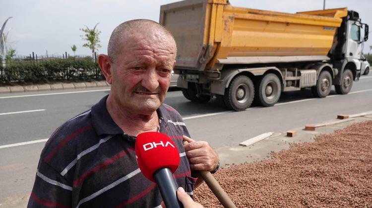 Arazilerimiz de eğimli olduğu için fındığı serecek harman bulamadık. O yüzden patoza vurdurduğum fındığımı Karadeniz Sahil Yolu'na getirmek zorunda kaldım.