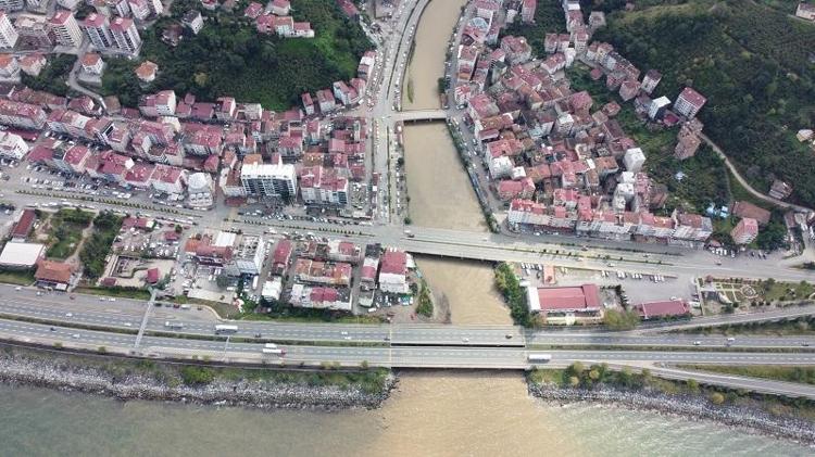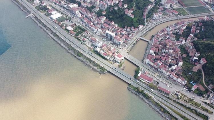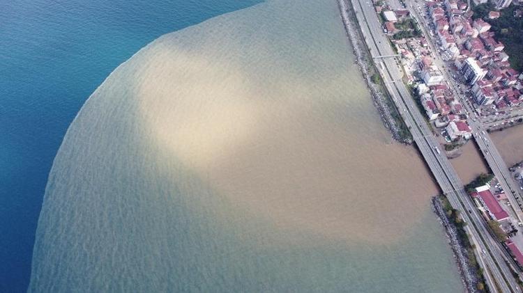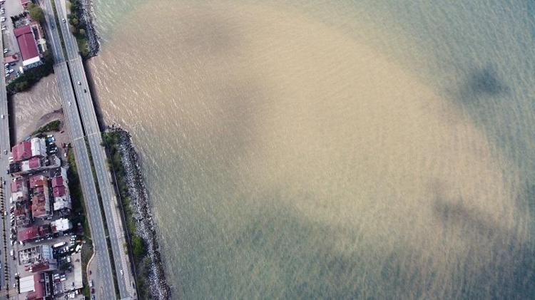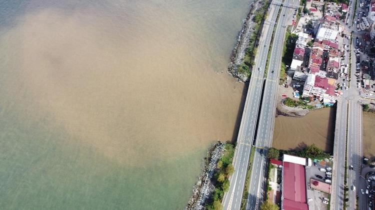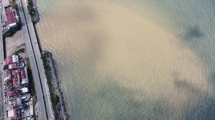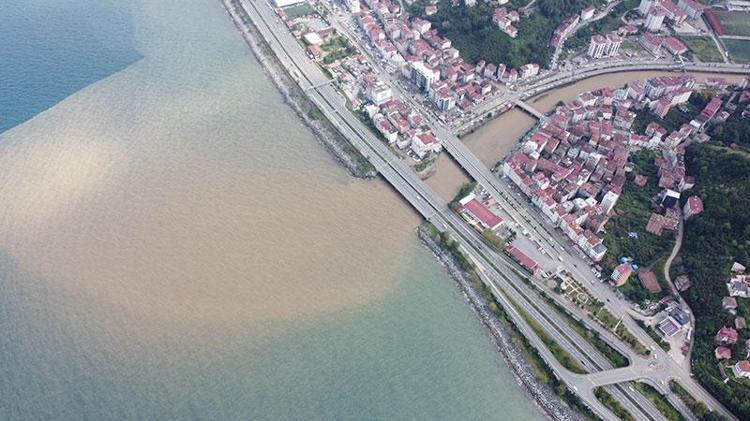 Trabzon’da 3 gündür etkili olan sağanak sonrası derelerden akan çamurlu su, denizin rengini değiştirdi. Karadeniz kıyı şeridindeki renk değişimi dronla görüntülendi.