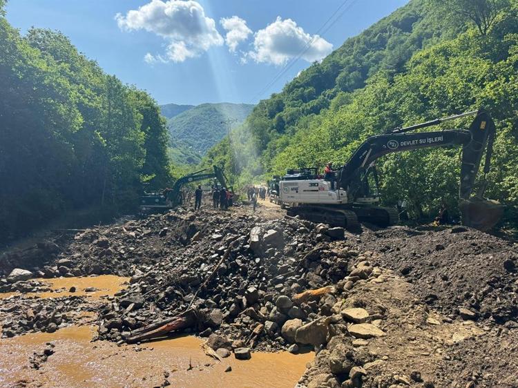 Sağanak sonrası suların çekildiği kentte temizlik ile hasar tespit çalışmaları sürüyor. Ekipler, iş makineleri eşliğinde, özellikle sahil kesiminde temizlik ve onarım yaparak selin izlerini silmeye çalışıyor.