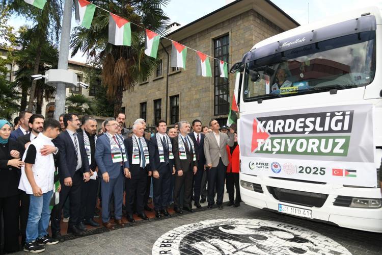 Trabzon’da Büyükşehir Belediyesi, Hayrat İnsani Yardım Derneği ve İl Milli Eğitim Müdürlüğü iş birliğinde toplanan 250 ton insani yardım malzemesi, 10 TIR'dan oluşan konvoyla Gazze'ye gönderilmek üzere uğurlandı. Duygusal anların yaşandığı uğurlama töreninde konuşan Büyükşehir Belediye Başkanı Ahmet Metin Genç, “Dileğimiz ve duamız kalıcı bir ateşkes süreci olması. Aynı zamanda bağımsız, özgür bir Filistin ve Kudüs” dedi.
