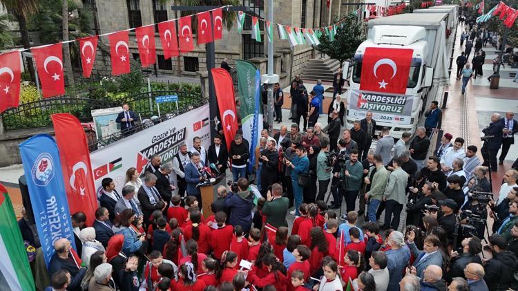 Trabzon Büyükşehir Belediyesi, Hayrat İnsani Yardım Derneği ve İl Milli Eğitim Müdürlüğü iş birliğiyle toplanan 250 ton insani yardım malzemesi, 10 TIR'dan oluşan konvoyla Gazze'ye ulaştırılmak üzere uğurlama töreni düzenlendi. Kahramanmaraş Caddesi'nde düzenlenen yardım konvoyunu uğurlama törenine, Vali Aziz Yıldırım, Büyükşehir Belediye Başkanı Ahmet Metin Genç, Ortahisar Belediye Başkanı Ahmet Kaya ve Hayrat İnsani Yardım Derneği yöneticilerinin yanı sıra, ilçe belediye başkanları, siyasi parti ve sivil toplum kuruluşlarının temsilcileri, kurum müdürleri, öğrenciler ile çok sayıda vatandaş katıldı.