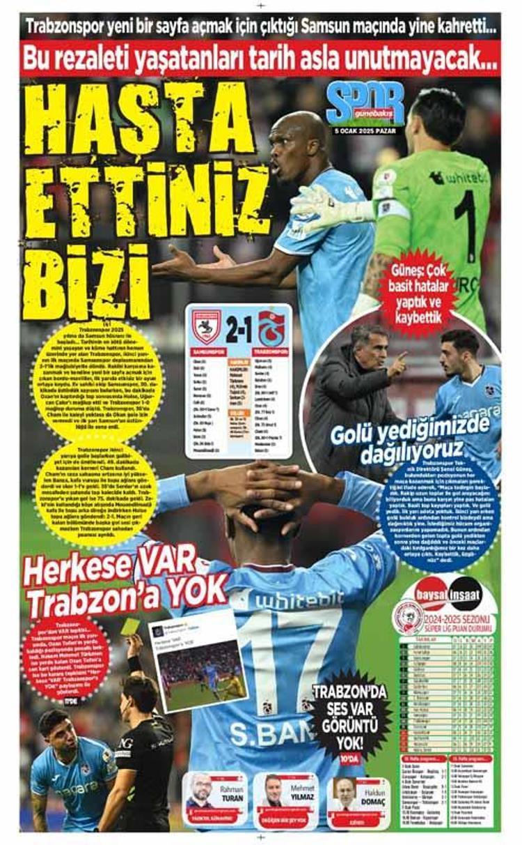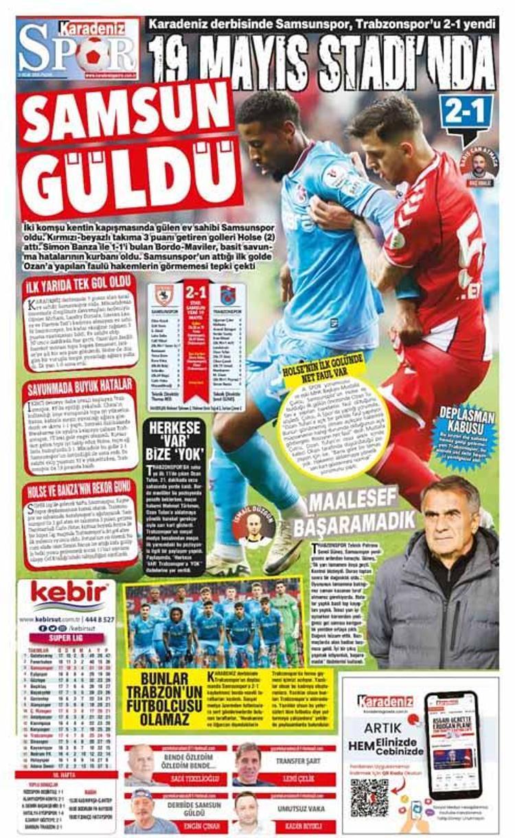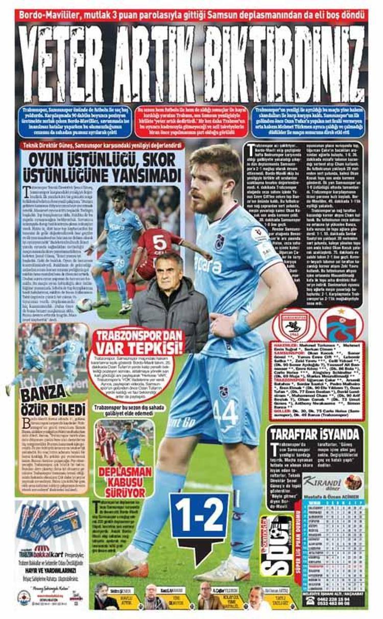Trabzonspor’un Samsunspor karşısında aldığı mağlubiyet kentte yayın yapan yerel gazetelerde farklı başlıklarla manşetlere taşındı.