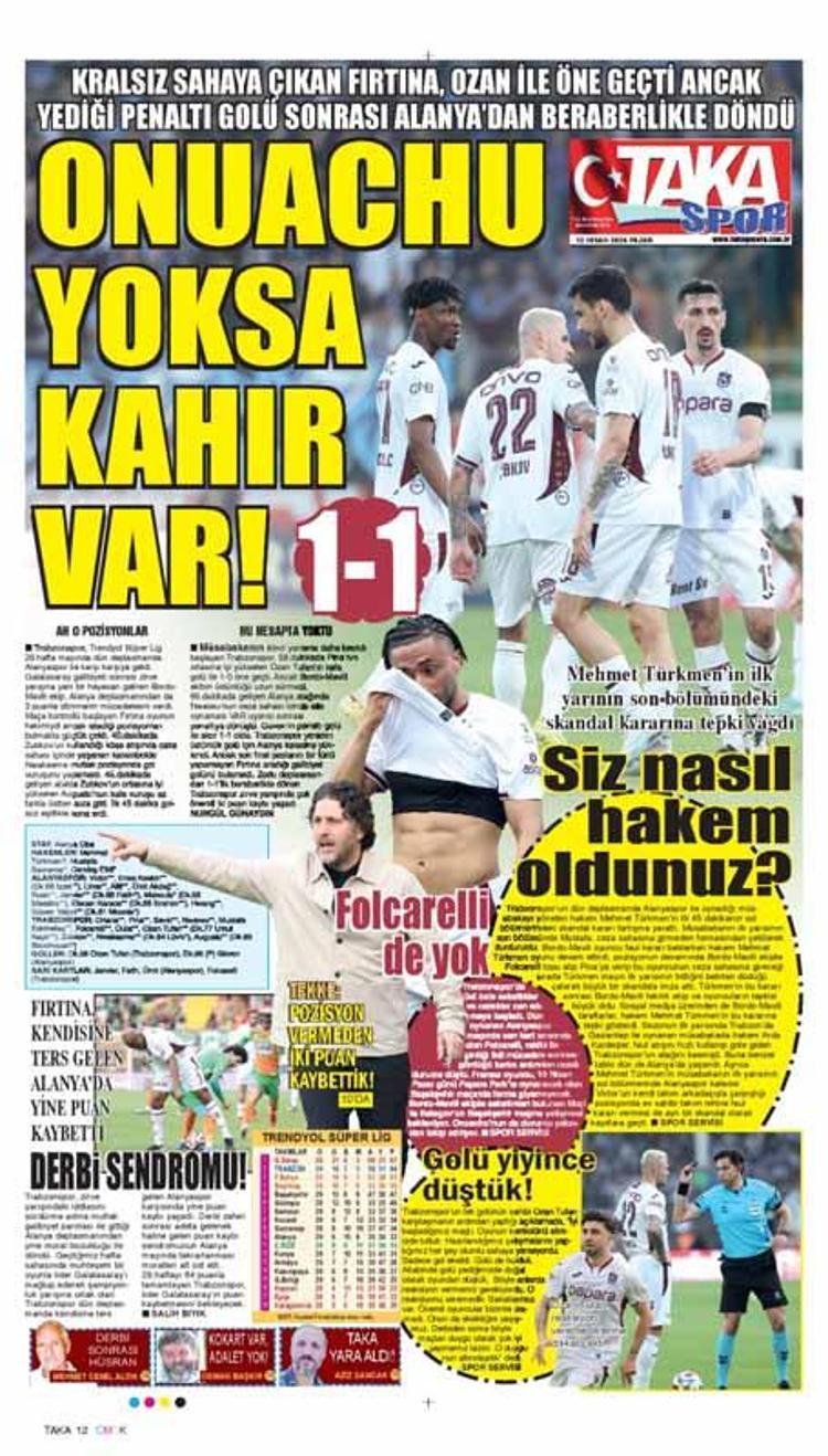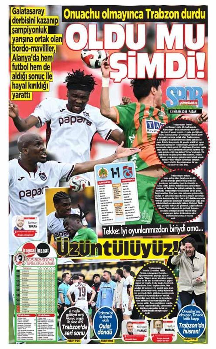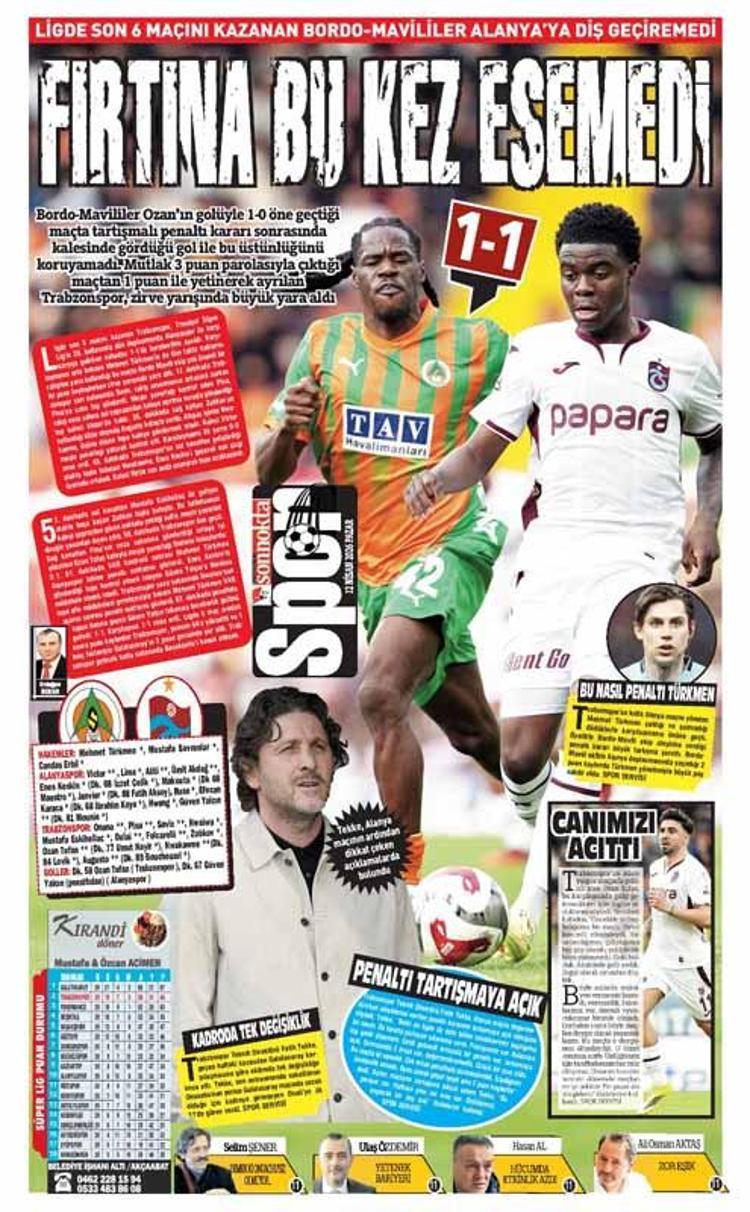 Öte yandan Trabzon’da yayın yapan yerel gazeteler de bordo-mavili takımın Corendon Alanyaspor deplasmanında aldığı beraberliği manşetlerine farklı başlıklarla taşıdı.