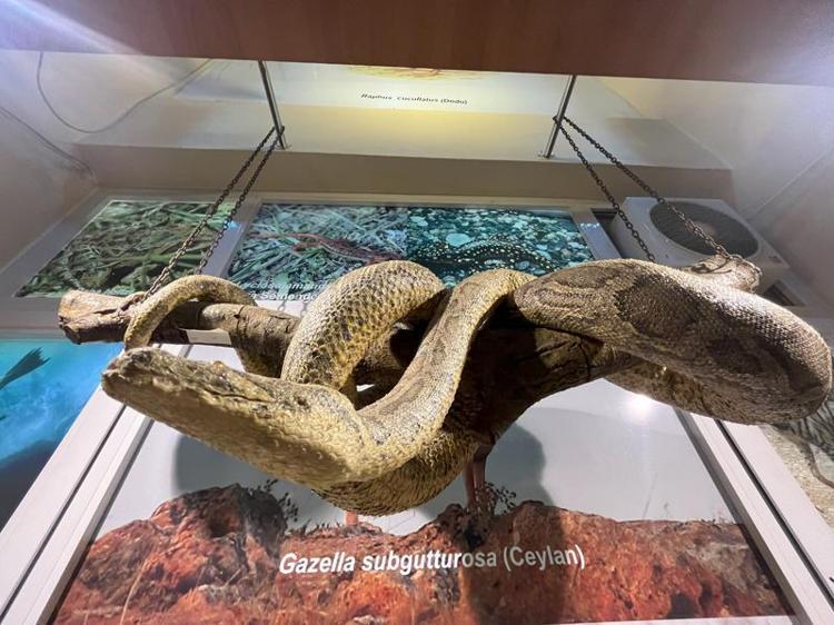 150 metrekarelik bir alandan oluşan müzenin en dikkat çeken parçaları ise trafik kazasında telef olan, arazi çalışmaları sırasında ölü bulunan ve hayvanat bahçelerinde herhangi bir nedenle ölen hayvanlar. Ayı, kurt, tilki, geyik, pelikanın da aralarında olduğu hayvanların tahnit edilerek muhafaza edildiğini ve düzenli olarak bakımlarının yapıldığını söyleyen Rahşen Kaya, şöyle konuştu: "Buradaki örneklerin hiçbiri tarafımızdan öldürülmüş örnekler değil. Bizim kendi çalışmalarımız sırasında, doğada ölü olarak bulduğumuz, örneğin trafik kazası, mesela şu alanda gördüğünüz hayvanların belki yüzde 90'ı trafik kazası sonucunda ölen hayvanlar. Mesela tilkilerin büyük bir kısmını, eğer sağlıklı bir şekildeyse tabii bir ön değerlendirilmesi yapılıyor, tarafımızdan getirilip, tahnit adını verdiğimiz işlemlerin yapılmasıyla elde edilmiş bir koleksiyon. Mesela alanda 2 farklı duruşta olan ayı görebilirsiniz. Geyikler, yabani kediler gibi, bunların tamamı dediğim gibi trafik kazası, araba çarpması sonucunda bize ulaştırılan veyahut da kendimizin bizzat bulduğu, bir zamanlar tabii bu anlamda Milli Parklar da bizi destekliyordu ama sonra onlar kendi bünyelerinde birtakım koleksiyon oluşturduğu için şu an çok fazla iletişim halinde değiliz ama işte civar köylerdeki vatandaş da bu anlamda destek oluyor. Veyahut da öğrencilerimiz ölü buldukları ve sağlık açısından sıkıntısız olan, otopsileri yapılmış hayvanlar, tahnit işlemine tabi tutulur.