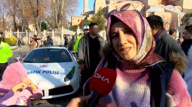 Suç örgütlerinden el konulan araçlar arasında yer alan Ferrari marka araç Ayasofya Meydanı'nda yoğun ilgi gördü.