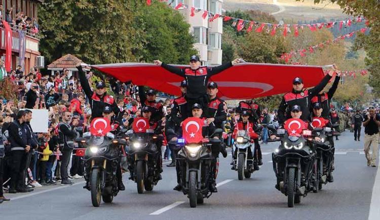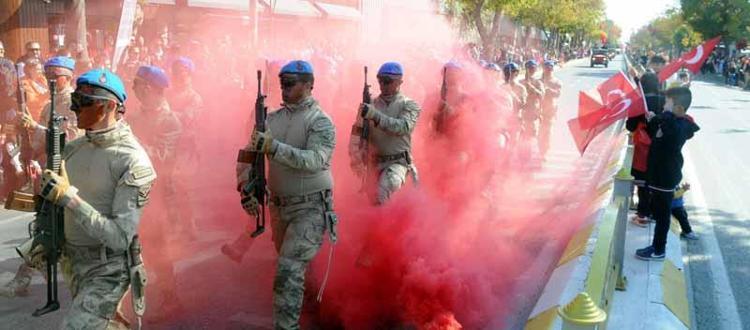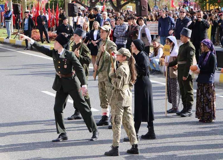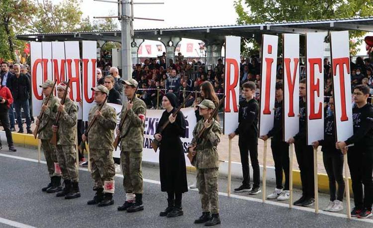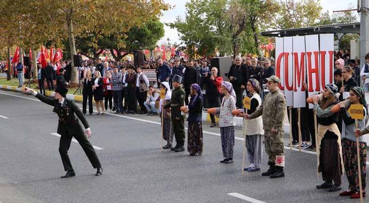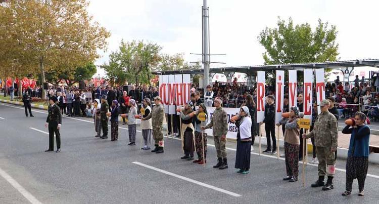 Vali Kırbıyık burada vatandaşlara seslendi. Kırbıyık, tarihin hem dünü anlatıp hem de yarınlara giden yolu aydınlattığını belirterek, "Tarih bize hem hatırlatır hem de zihinlerimize bir şuur, bir karakter bırakır. Cumhuriyet Bayramı'nı, 30 Ağustos Zafer Bayramı'nı, 19 Mayıs'ı kutlamaktan maksat, sadece o günlerde neler yaşandığını ezberlemek değildir. Asıl maksat, yarın başımıza bir zorluk geldiğinde ne yapacağımızı öğrenmektir. Bu ülkeye art niyet besleyenler, işgal etmek isteyenler ne yapmış? Buna karşı bu vatanın evlatları ne yapmış? Gazi Mustafa Kemal ne yapmış? Arkadaşları ne yapmış? Şerife Bacılar, Nene Hatunlar, Sütçü İmamlar ve daha niceleri hangi zorluklara katlanmış ve bu törenlerin maksadını, bu zorlukları öğrenmek ve bunlara karşı güçlü olabilmek için neler yapmamız gerektiğini hissetmek için ruhumuzda yaşamak için yapıyoruz" dedi. Vali Kırbıyık'ın konuşmasının ardından 29 Ekim kutlamaları, okulların ve askeri birliklerin geçişiyle sürdü. Vatandaşlar, askeri birliklerin geçişi sırasında alkışlarıyla destek verdi.