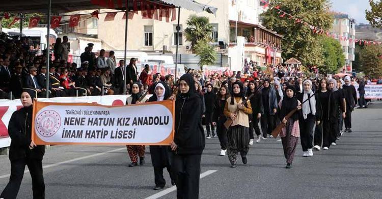 Saygı duruşu ve İstiklal Marşı'nın okunmasının ardından törenin açılış konuşmasını yapan Tekirdağ Valisi Aziz Yıldırım, "29 Ekim 1923'te ilan ettiğimiz Cumhuriyetimiz, Kurtuluş Savaşı boyunca genç, yaşlı, kadın, erkek demeden verilen cansiperane bir mücadelenin eseridir. Dönemin imkansızlıkları ve zorluklarına rağmen, Gazi Mustafa Kemal liderliğinde düşmana karşı kazanılmış bir zaferdir" dedi.