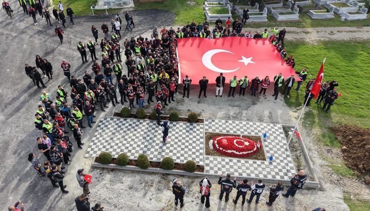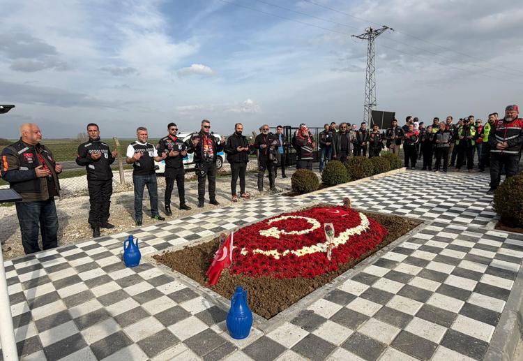 Perinthos Motosiklet Kulübü Başkanı Sunay Cin, Trakya'daki motosiklet derneklerinin bir araya geldiğini belirterek, "İstanbul'dan da katılan arkadaşlarımız oldu. Önce şehit ailemizi ziyaret ettik. Çanakkale'den getirdiğimiz kutsal toprağımızı, bayrağımızı ve Kur'an-ı Kerim teslim ettik. Ardından hep birlikte mezarlığa giderek, şehidimizin kabrinde dualarımızı okuduk.