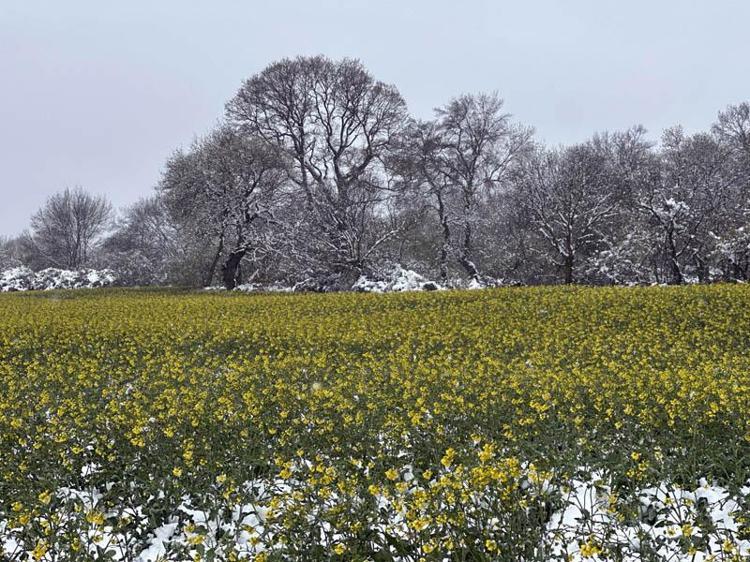 Trakya'da ayçiçeğine alternatif olan ve çiftçinin 'sarı altın çiçek' olarak adlandırdığı kanola ekilen tarlalar sarıya bürünürken, Edirne'de 22 yıl aradan sonra nisan ayında yağan kar yağışıyla birlikte bölge beyaz örtüyle kaplandı.