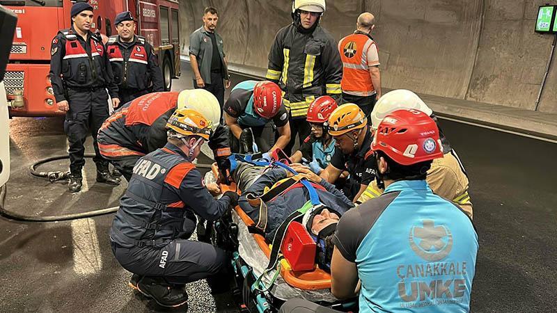 Çanakkale'nin Ayvacık ilçesinde AFAD koordinasyonunda Troya Tüneli’nde trafik kazası tatbikatı yapıldı.