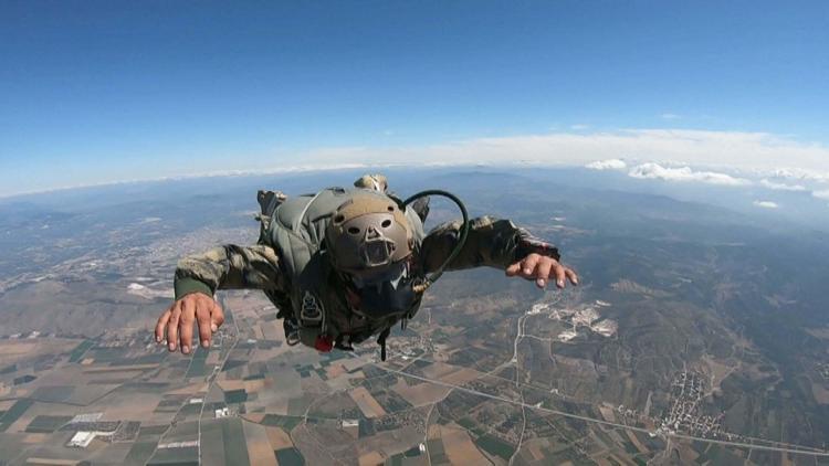 Askeri Serbest Paraşüt Eğitimi'nin 8 haftalık verildiğini dile getiren Binbaşı Ercan, "Akhisar Hava Meydan Komutanlığı'nda bu eğitimi icra etmekteyiz. Bu konuda dünyadaki en iyi eğitimlerden birisini alan kursiyerlerimiz, paraşüt eğitiminin sonrasında gece şartlarında gece görüş gözlüğüyle, yüksek irtifadan oksijen sistemi kullanarak bilinmeyen bir araziye yanlarında götürecekleri, görev için kullandıkları silah, mühimmat teçhizatları da alarak nokta hedefine sızma harekatı icra edecek seviyeye gelirler.