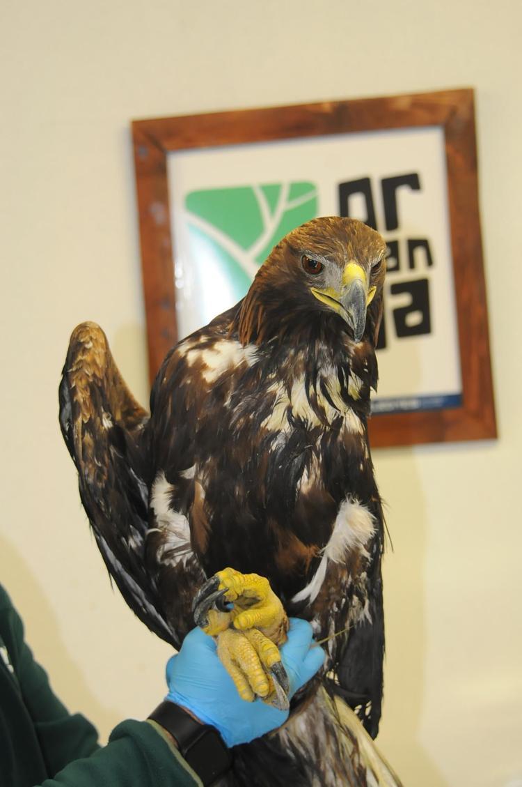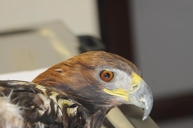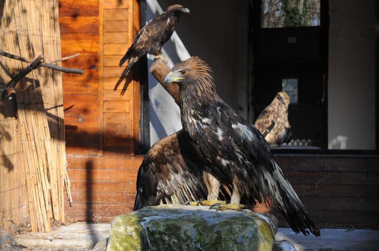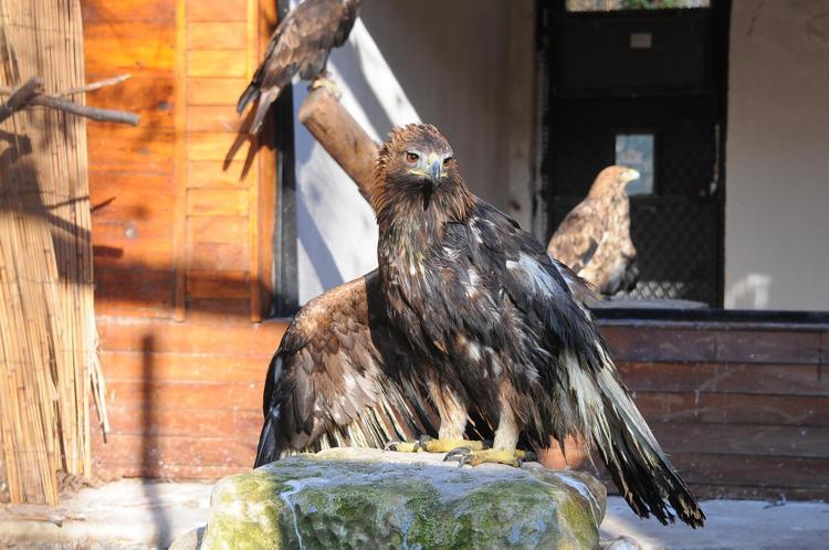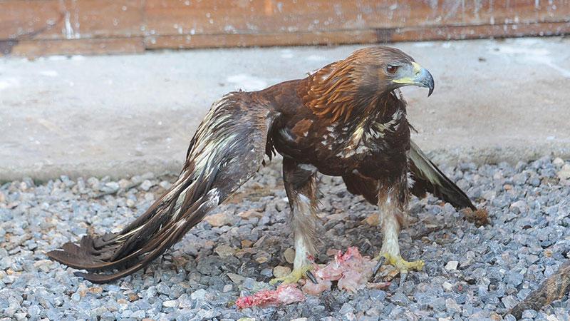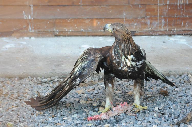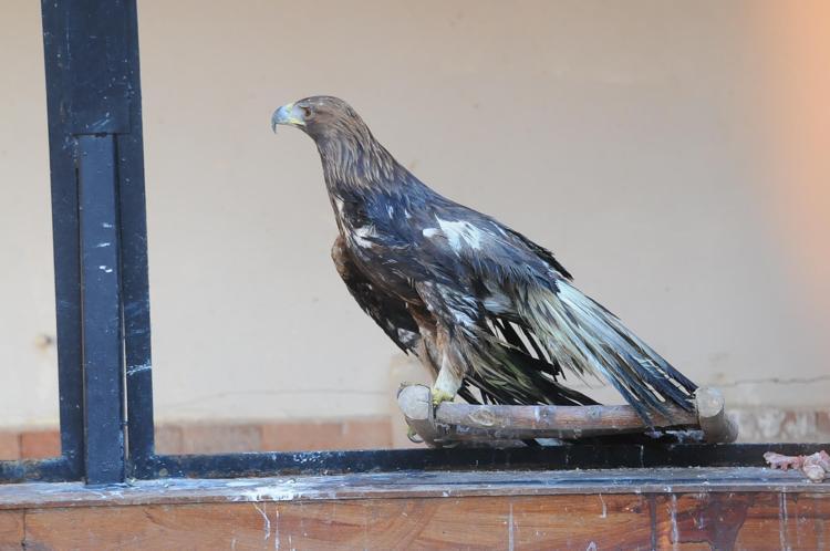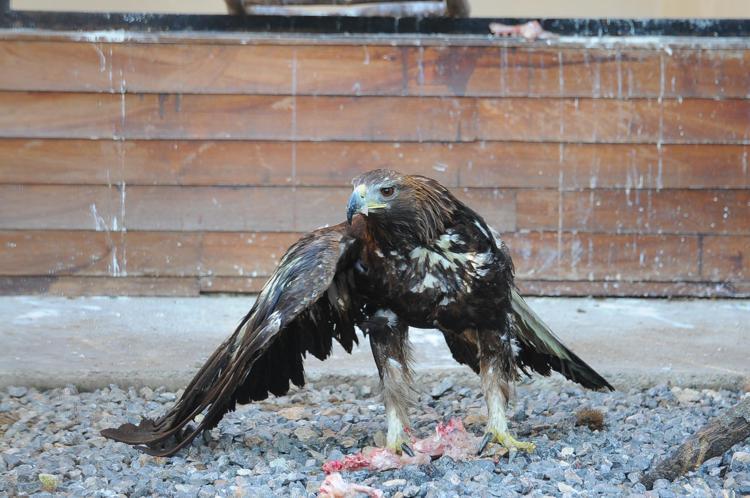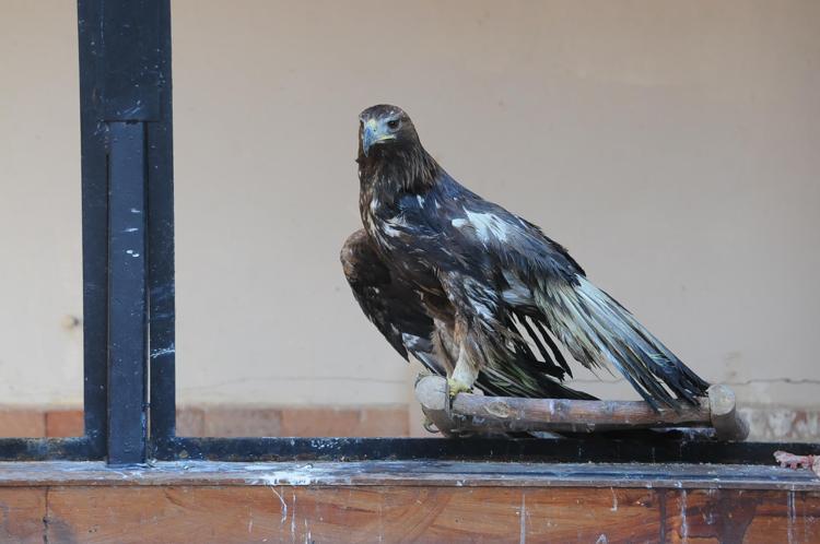 Doğaya dönecek durumda olmayan 'kaya kartalı', barınakta kendi gibi engelli kuşlarla birlikte özel bakım görecek.