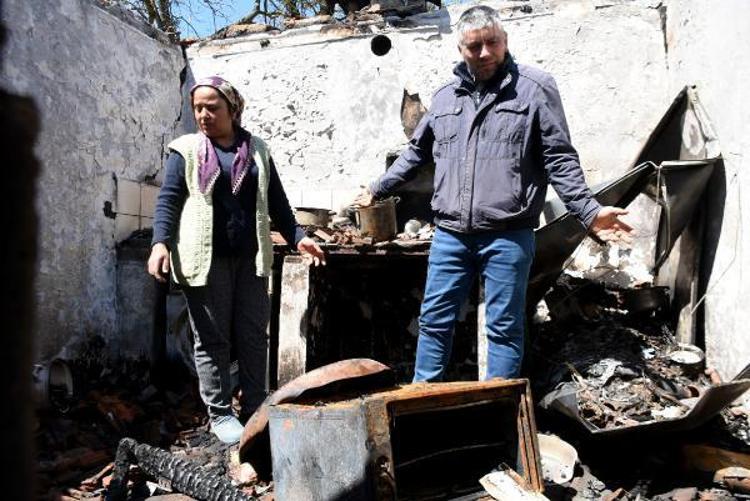 "Gözlerimi açtığımda evimizin bütün tavanı yanıyordu. Sadece giriş kalmıştı, oradan çıkabildim. Çıktığımda bütün ev yanıyordu, itfaiyeyi arayabildim. Eşimi aradım, 'Ev yanıyor' dedim. Köylü geldi ama yapacak bir şeyimiz kalmadı. Bir miktar paramız vardı. Yarısını kardeşimden borç almıştım.