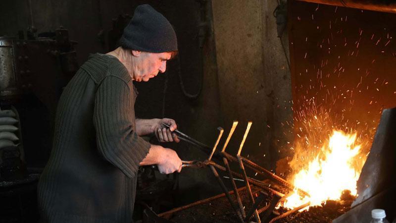 Manisa’nın Turgutlu ilçesinde sıcak demir ustası Mustafa Erözdemir (60), ata mesleğini yaklaşık 50 yıldır sürdürüyor. Teknolojinin gelişmesi ve çırak yetişmemesi nedeniyle zanaatın son temsilcilerinden biri olduğunu belirten Erözdemir, “Teknoloji bizi öldürdü, artık ne çırak var ne de kalfa. Biz bu işin son temsilcileriyiz. Her işin bir zorluğu olsa da ben işimi severek yapıyorum. Bir daha dünyaya gelsem, yine demirci olurdum” dedi.
