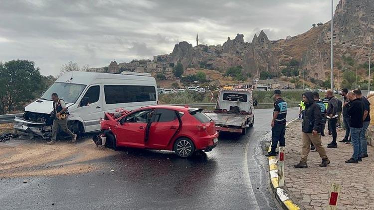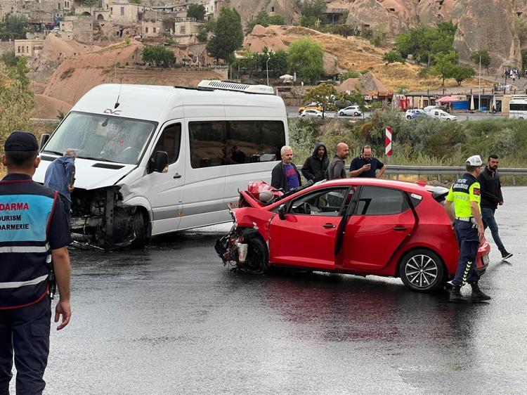 Nevşehir’de, turistleri taşıyan minibüs ile otomobilin çarpıştığı kazada 6 kişi yaralandı.