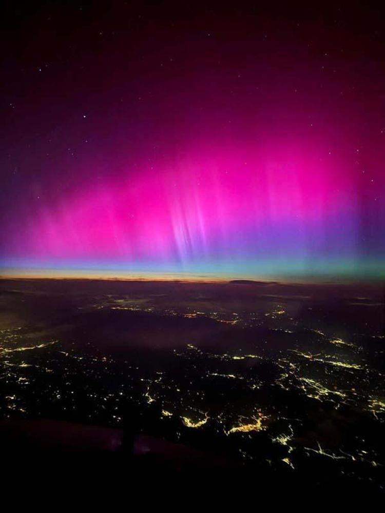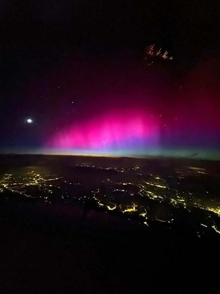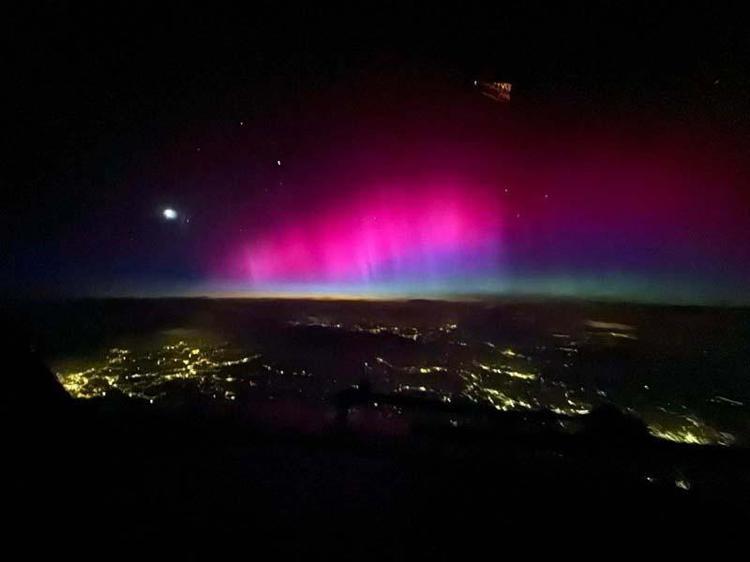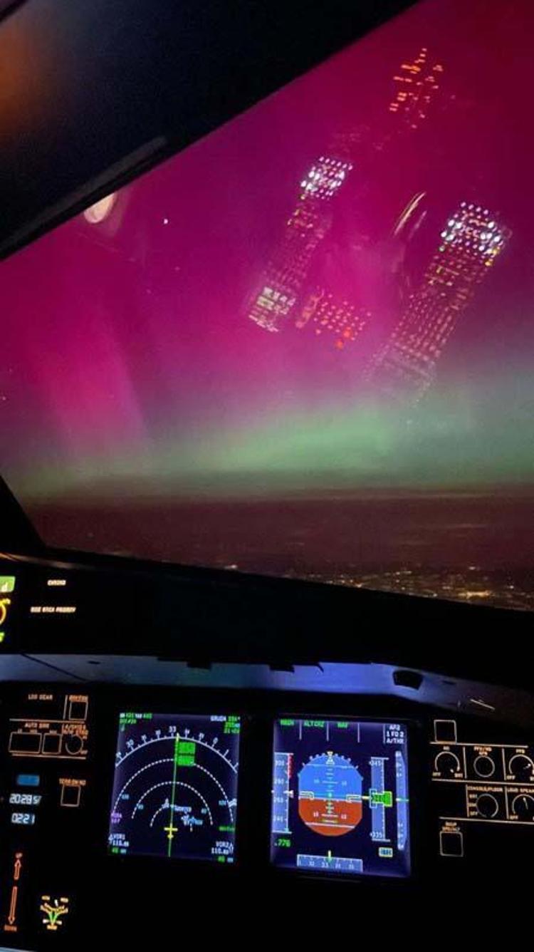 Kuzey Işıklarını uçuş sırasında gören pilotlar bu muhteşem anı fotoğraf kareleriyle ölümsüzleştirdi.