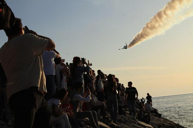 Sahilde Nihal Atakaş Camisi çevresinde toplanan İskenderunlular Türk Hava Kuvvetleri'nin akrobasi timi Türk Yıldızları’nın gösterilerini hayranlıkla izledi.