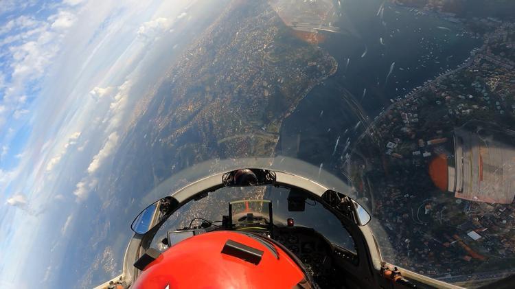 29 Ekim Cumhuriyet Bayramı ve Cumhuriyetin kuruluşunun 100. yılı nedeniyle İstanbul Boğazı'nda gösteri uçuşu yapan Türk Yıldızları'nın kokpit içerisinden görüntüleri paylaşıldı.
