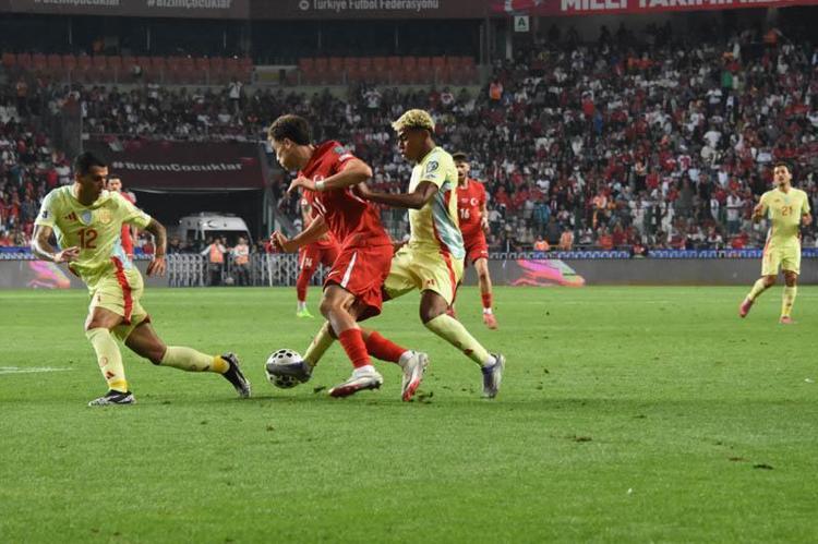 HaberlerFoto Galeri Haberleri Türkiye - İspanya: 0-6 Türkiye - İspanya: 0-6FIFA 2026 Dünya Kupası Avrupa Elemeleri E Grubu ikinci maçında Türkiye, İspanya’ya 6-0 mağlup oldu. Bu sonuçla İspanya puanını 6’ya yükseltirken, Türkiye 3 puanda kaldı.• 07 Eylül 2025 - 23:43 • Son Güncelleme: 07 Eylül 2025 - 23:43• 07 Eylül 2025 - 23:43 • Son Güncelleme: 07 Eylül 2025 - 23:43123456789101112131415161718192021222324252627282930 313233343536373839404142434445464748495051525354555657türkiyeispanyaeleme