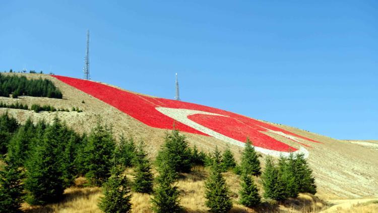Şehrin her noktasından çıplak gözle görülecek olan Türk bayrağı tamamlandığında Türkiye’nin en büyük bayrağı olarak kayıtlara geçecek.